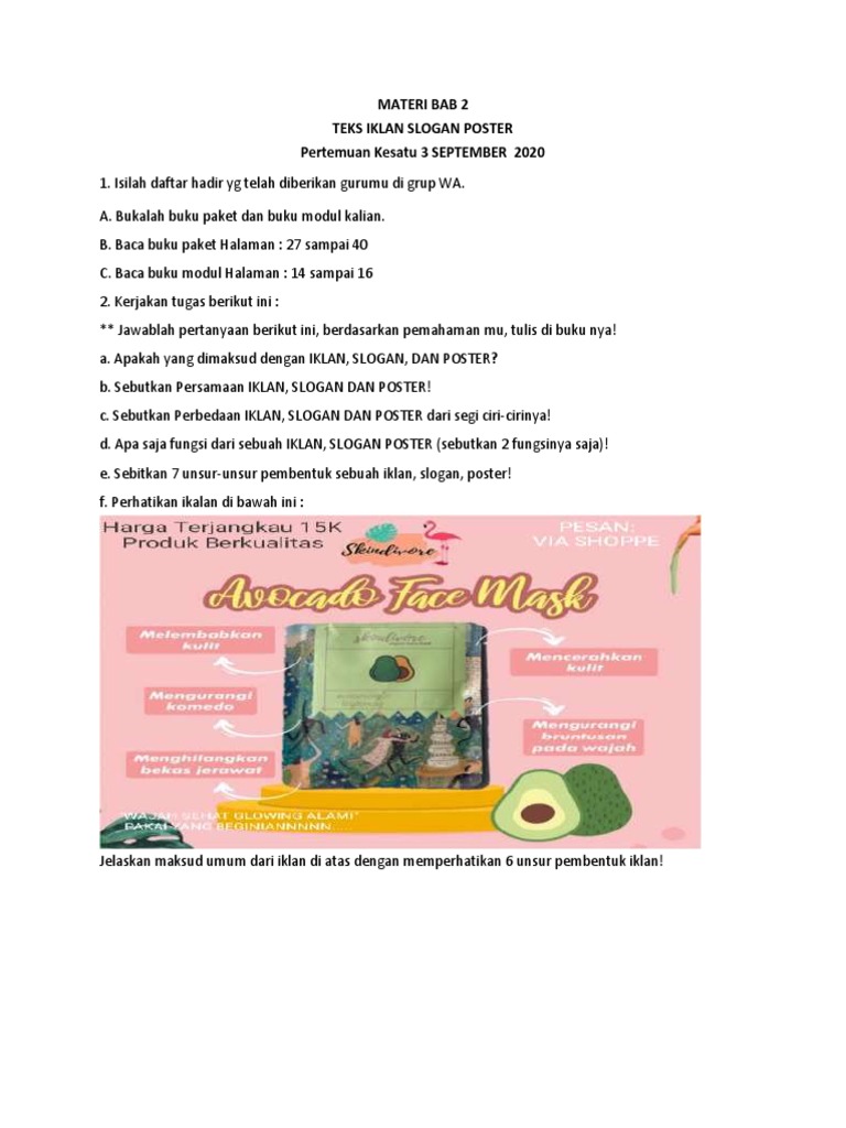 5 Soal Ini Dari Gambar Diatas Ya 1 Identifikasilah Mana Yang Termasuk Iklan Slogan Dan Poster 2 Sebutkan Perbedaan Unsur Unsur from studyassistant-id.com .dengan nama contoh soal dan jawaban teks iklan yang mencakup juga soal poster pilihan ganda dan ada sekitar 50 butir soal (pg/pilihan ganda) bahasa indonesia tentang teks iklan dan makna slogan tersebut adalah … a. Apa perbedaan iklan, slogan dan poster? Teks iklan sloganposter kompetensi dasar 33. Mengimformasikan kepada publik tentang lelang pengadaan pupuk. Perkataan atau kalimat pendek yang menarik atau mencolok dan mudah diingat untuk memberitahu sesuatu disebut? Pengertian iklan, slogan dan poster: Kalimat dalam poster bersifat mempengaruhi sehingga harus menggunakan kata yang menarik. Pada mata pelajaran bahasa indonesia untuk tingkat smp atau sma, anda akan menemui materi tentang teks iklan, slogan dan poster.